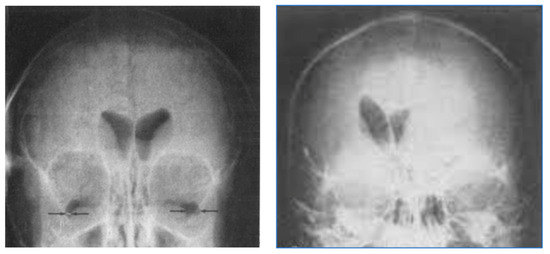 In plain radiographs of the head, contrast could be seen between bone of different thickness, but the soft tissue of the brain itself could not specifically be seen (Figure 2). If air was substituted for CSF, contrast could be created between the ventricular system (now containing air rather than CSF) and the surrounding brain. This technique, which was developed by Walter Dandy in 1918–1919, was used diagnostically to recognize disease of the brain by displacement or distortion of the ventricular system and/or subarachnoid space in air studies of the brain [2,3] as shown in Figure 3.