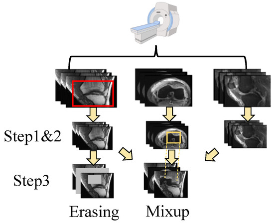 The shortage of data has been a persistent challenge in medical image analysis. Data augmentation offers a promising solution to mitigate this limitation. In contrast to techniques commonly applied to natural images, we modified two methods, erasing and mixup, to suit the specific structure of the data used in this study. In addition, we also use random crops as another augmentation method. The augmentation operation is integrated into the data processing flow used in MRNet [15]. The details are shown in Figure 2.