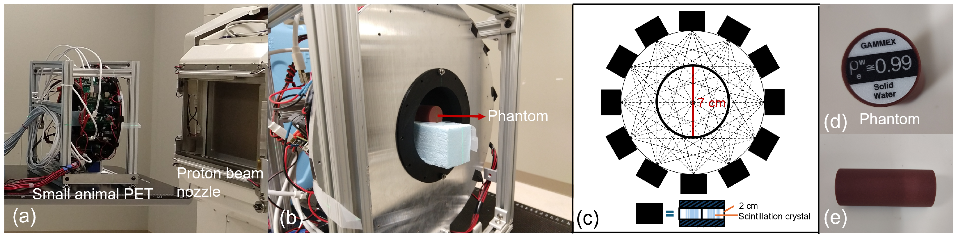 - Cheng, X.; Hu, K.; Yang, D.; Shao, Y. A High-performance Onboard Small Animal PET for Preclinical Radiotherapy Research. In Proceedings of the 2020 IEEE Nuclear Science Symposium and Medical Imaging Conference (NSS/MIC), Boston, MA, USA, 31 October–7 November 2020; IEEE: Piscataway, NJ, USA, 2020; pp. 1–3. [Google Scholar]