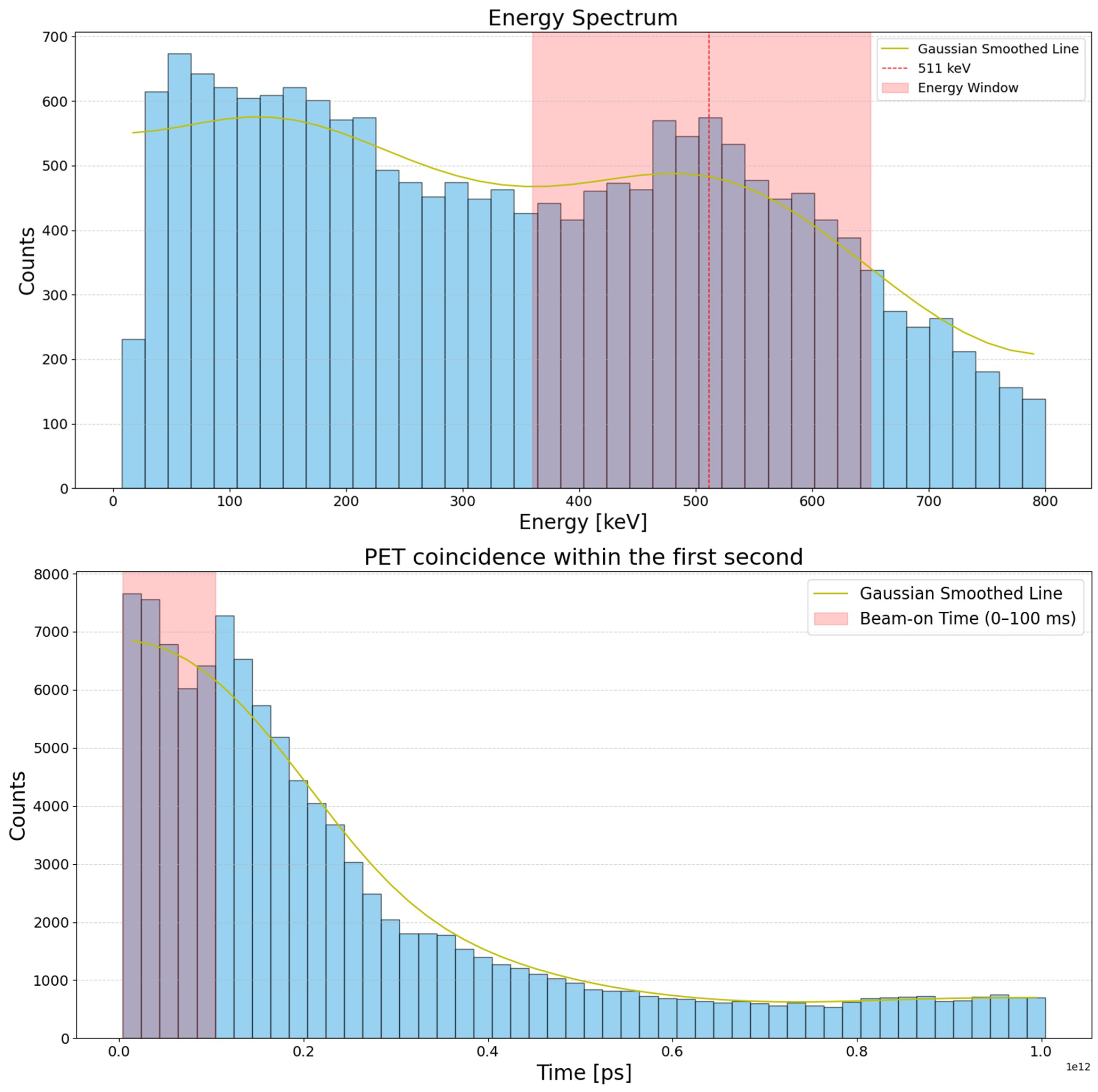 3.1. Characterization of PET Events During and Immediately After Irradiation
