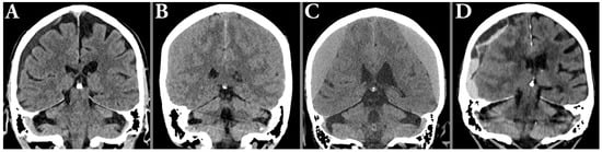 - Miah, I.P.; Tank, Y.; Rosendaal, F.R.; Peul, W.C.; Dammers, R.; Lingsma, H.F.; Hertog, H.M.D.; Jellema, K.; van der Gaag, N.A. Radiological prognostic factors of chronic subdural hematoma recurrence: A systematic review and meta-analysis. Neuroradiology 2021, 63, 27–40, Erratum in Neuroradiology 2021, 63, 159–160. [Google Scholar] [CrossRef]