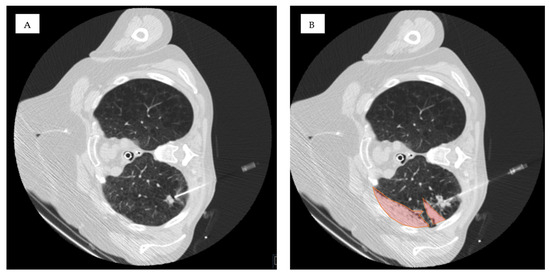 - Najafi, A.; Al Ahmar, M.; Bonnet, B.; Delpla, A.; Kobe, A.; Madani, K.; Roux, C.; Deschamps, F.; de Baère, T.; Tselikas, L. The PEARL approach for CT-guided lung biopsy: Assessment of complication rate. Radiology 2022, 302, 473–480. [Google Scholar] [CrossRef]
