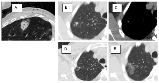 - Covey, A.M.; Gandhi, R.; Brody, L.A.; Getrajdman, G.; Thaler, H.T.; Brown, K.T. Factors associated with pneumothorax and pneumothorax requiring treatment after percutaneous lung biopsy in 443 consecutive patients. J. Vasc. Interv. Radiol. 2004, 15, 479–483. [Google Scholar] [CrossRef]