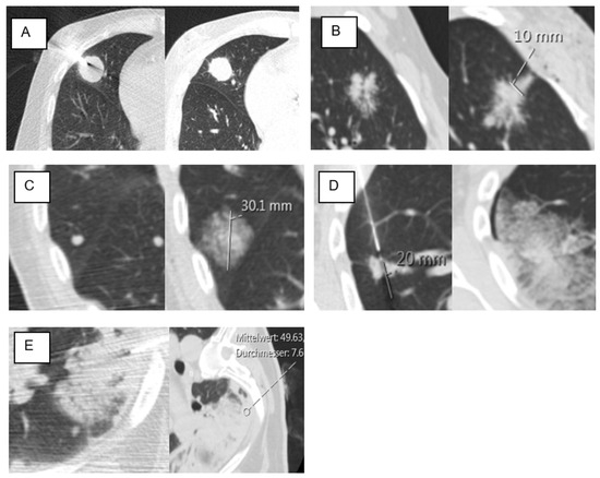 - Tomiyama, N.; Yasuhara, Y.; Nakajima, Y.; Adachi, S.; Arai, Y.; Kusumoto, M.; Eguchi, K.; Kuriyama, K.; Sakai, F.; Noguchi, M. CT-guided needle biopsy of lung lesions: A survey of severe complication based on 9783 biopsies in Japan. Eur. J. Radiol. 2006, 59, 60–64. [Google Scholar] [CrossRef]