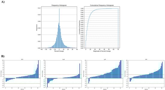 All analyses were conducted in Python (version 3.8) using the NumPy (2.2.0), Pandas (2.0.3), SciPy (1.11.1), Matplotlib (3.7.2), and Seaborn (0.12.2) packages. For each lesion, the baseline measurement was defined as the measurement from the initial segmentation sequence. Subsequent lesion measurements were compared to this baseline using the following formula for percent difference: