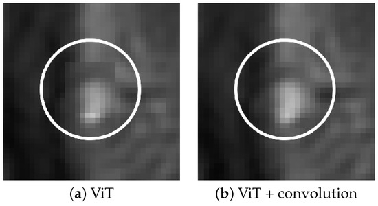 Effect of convolution in removing patch artifacts. Subfigure (a) shows ViT reconstruction without convolution, (b) shows reconstruction with the convolutional layer added.