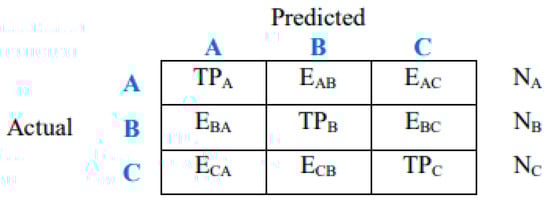 In image processing with a 3 × 3 confusion matrix (Figure 5 and Figure 6), we are evaluating a model that classifies images into three classes. The matrix displays true positives (TPs), true negatives (TNs), false positives (FPs), and false negatives (FNs) for each class, allowing for the calculation of metrics like accuracy, precision, and recall.