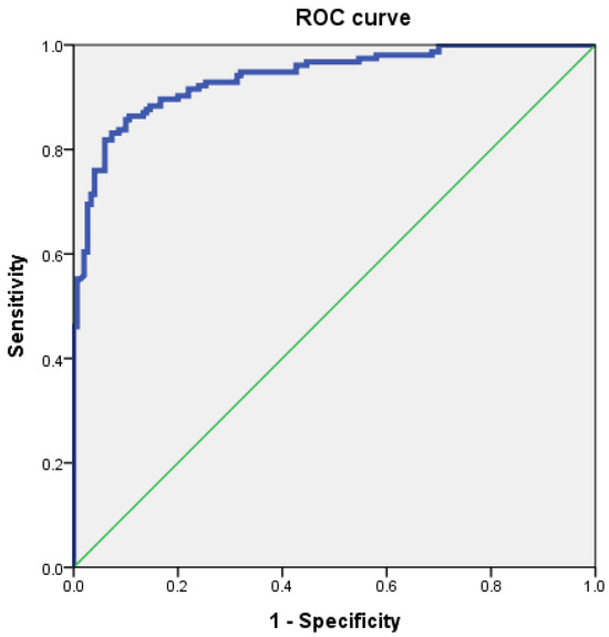 To evaluate the diagnostic utility of CFCSA for predicting CFBS, receiver operating characteristic (ROC) curve analysis was conducted. The optimal cut-off value for CFCSA was determined to be 33.02 mm2, which demonstrated a sensitivity of 86.4%, a specificity of 86.7%, and an area under the curve (AUC) of 0.94 (standard error = 0.0128; 95% CI, 0.91–0.96) (Figure 3).