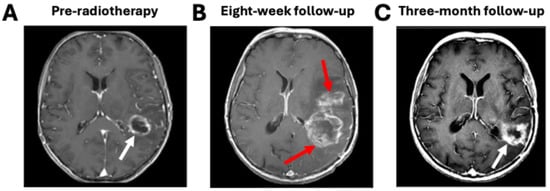 - Mayo, Z.S.; Billena, C.; Suh, J.H.; Lo, S.S.; Chao, S.T. The dilemma of radiation necrosis from diagnosis to treatment in the management of brain metastases. Neuro-Oncology 2024, 26 (Suppl. S1), S56–S65. [Google Scholar] [CrossRef] [PubMed]