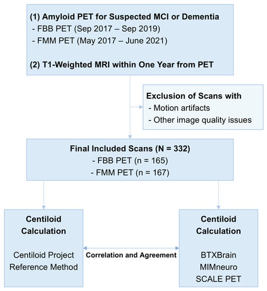 - Shang, C.; Sakurai, K.; Nihashi, T.; Arahata, Y.; Takeda, A.; Ishii, K.; Ishii, K.; Matsuda, H.; Ito, K.; Kato, T.; et al. Comparison of consistency in centiloid scale among different analytical methods in amyloid PET: The CapAIBL, VIZCalc, and Amyquant methods. Ann. Nucl. Med. 2024, 38, 460–467. [Google Scholar] [CrossRef] [PubMed]