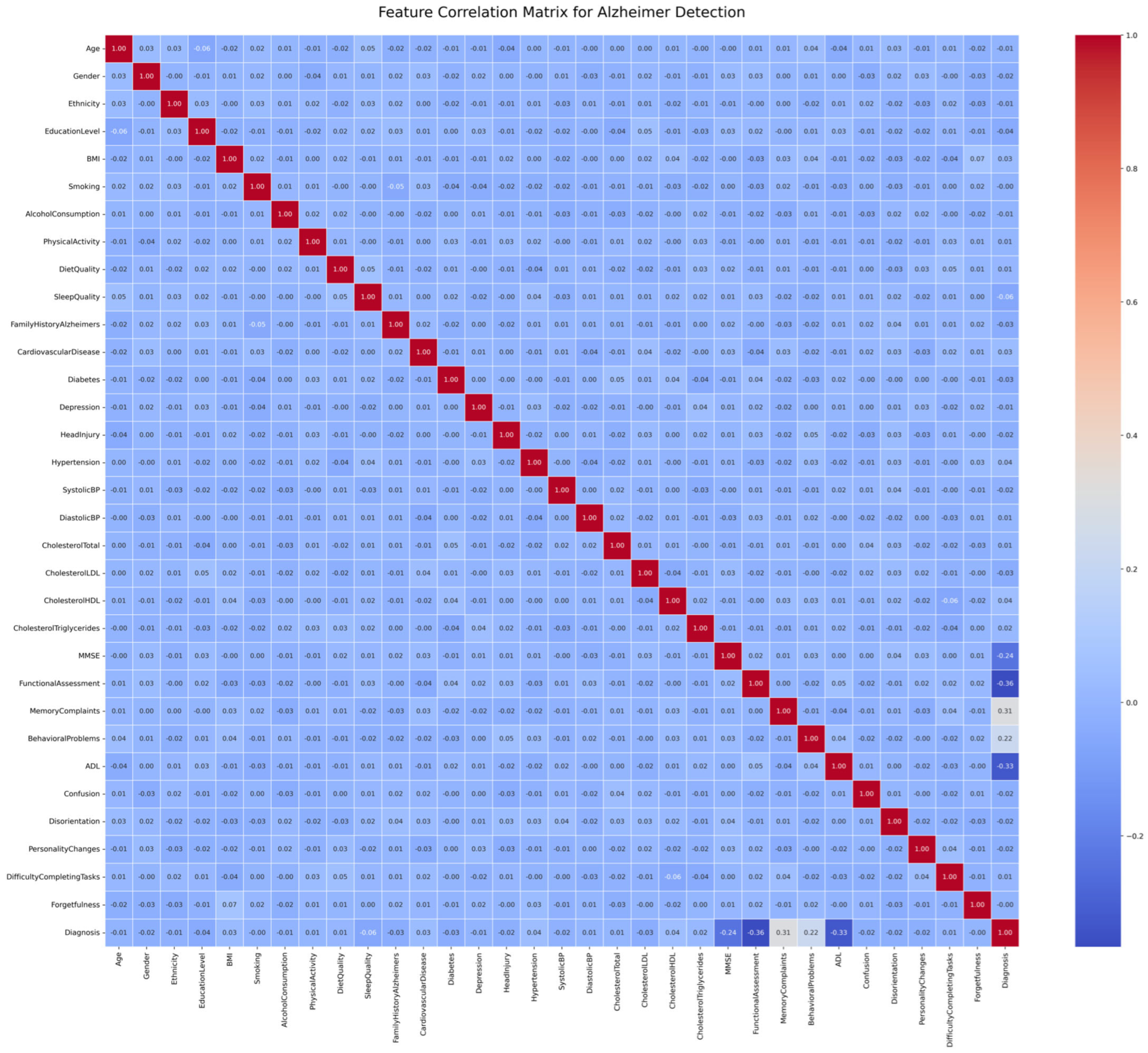 https://www.kaggle.com/datasets/rabieelkharoua/alzheimers-disease-dataset, accessed on 25 September 2024). No fresh information was gathered specifically for this investigation. Institutional review board approval was not necessary because this work involves an earlier examination of publicly accessible datasets.