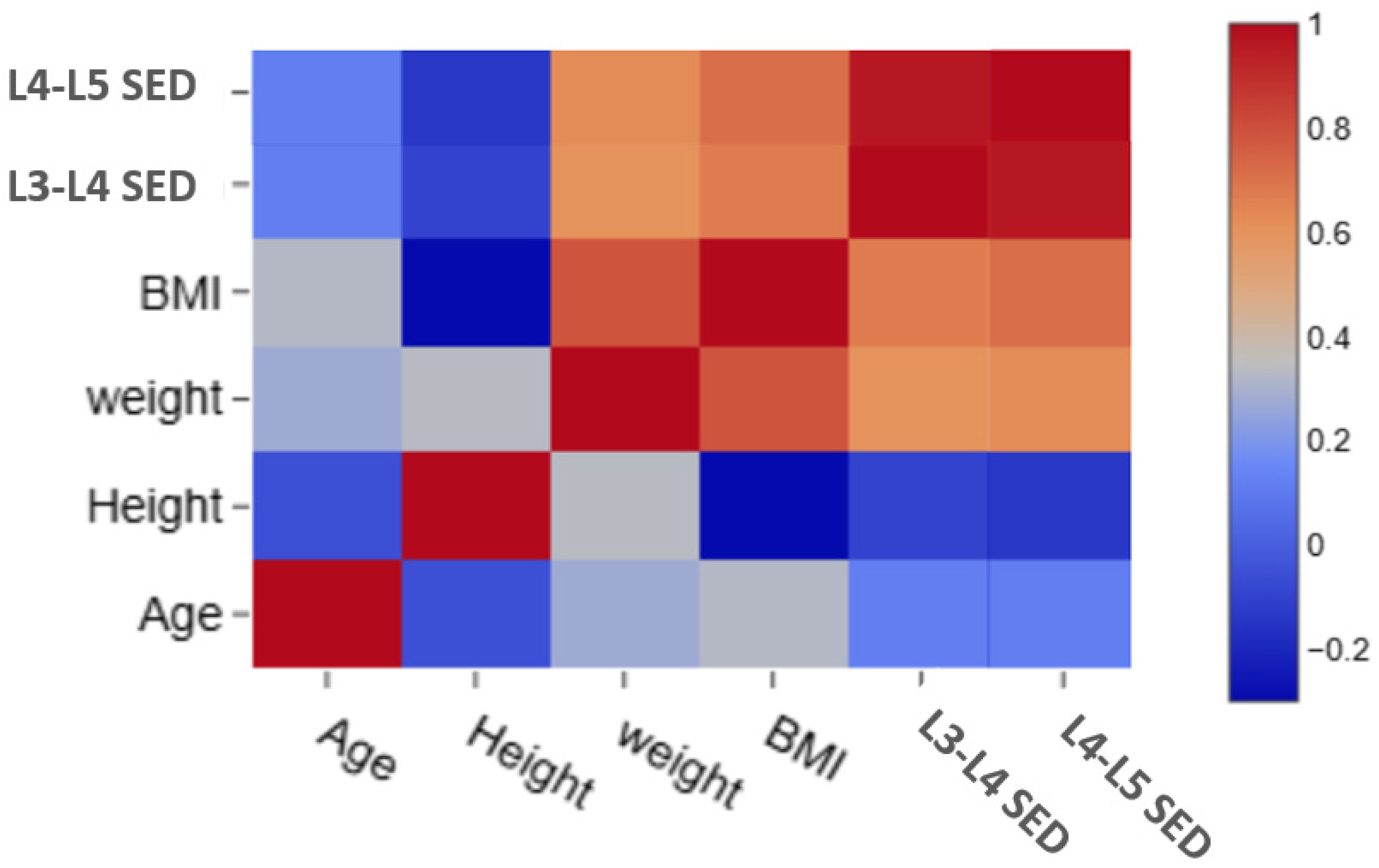 | L4–L5 SED | r | 0.964 ** | 1 |