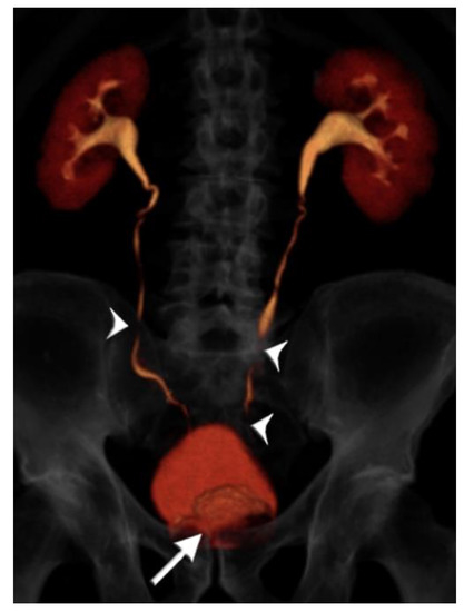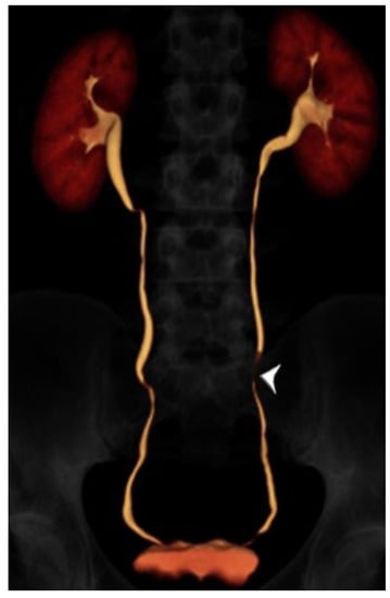 - Potenta, S.E.; D’Agostino, R.; Sternberg, K.M.; Tatsumi, K.; Perusse, K. CT Urography for Evaluation of the Ureter. Radiographics 2015, 35, 709–726. [Google Scholar] [CrossRef] [PubMed]