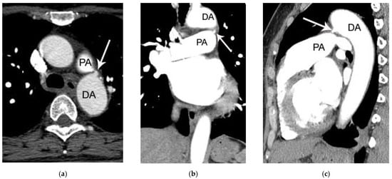 - Goitein, O.; Fuhrman, C.R.; Lacomis, J.M. Incidental finding on MDCT of patent ductus arteriosus: Use of CT and MRI to assess clinical importance. AJR Am. J. Roentgenol. 2005, 184, 1924–1931. [Google Scholar] [CrossRef] [PubMed]