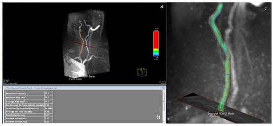 - Oyre, S.; Paaske, W.P.; Ringgaard, S.; Kozerke, S.; Erlandsen, M.; Boesiger, P.; Pedersen, E.M. Automatic accurate non-invasive quantitation of blood flow, cross-sectional vessel area, and wall shear stress by modelling of magnetic resonance velocity data. Eur. J. Vasc. Endovasc. Surg. 1998, 16, 517–524. [Google Scholar] [CrossRef] [Green Version]