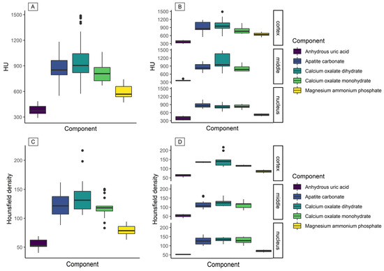 - Motley, G.; Dalrymple, N.; Keesling, C.; Fischer, J.; Harmon, W. Hounsfield unit density in the determination of urinary stone composition. Urology 2001, 58, 170–173. [Google Scholar] [CrossRef]