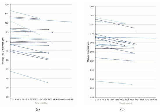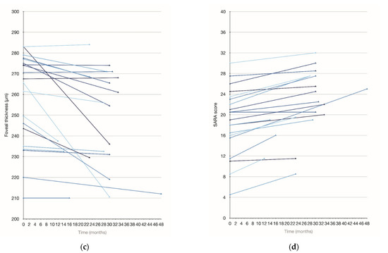 - Thomas-Black, G.J.; Parkinson, M.H.; Bremner, F.; Giunti, P. Peripapillary retinal nerve fibre layer thickness in Friedreich’s ataxia: A biomarker for trials? Brain 2019, 142, e23. [Google Scholar] [CrossRef]