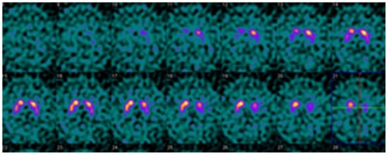- Stokkel, M.P.M.; Dibbets-Schneider, P.; Koestering, E.; Dragoiescu, C.; Blokland, K.A.K. Reproducibility of a standardized quantita-tive analysis using fixed regions of interest to differentiate movement disorders on 123I-FP-CIT SPECT. J. Nucl. Med. Technol. 2007, 35, 21–26. [Google Scholar] [PubMed]