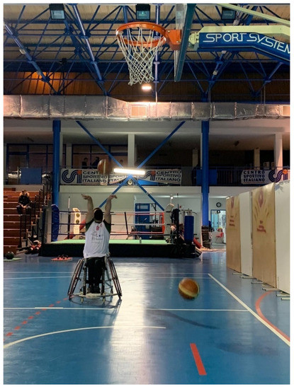 Figure 5. Wheelchair basketball. Picture of the patient in-wheelchair during a training session.