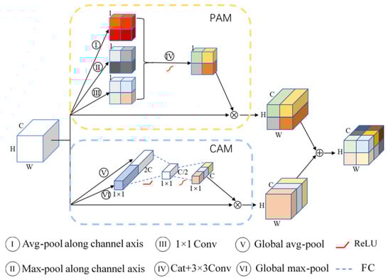 Similarly, for position attention module, the network needs global information of different channels. Three position descriptors , are generated by average pooling, max pooling along the channel dimension, and a 1 × 1 convolution operation: