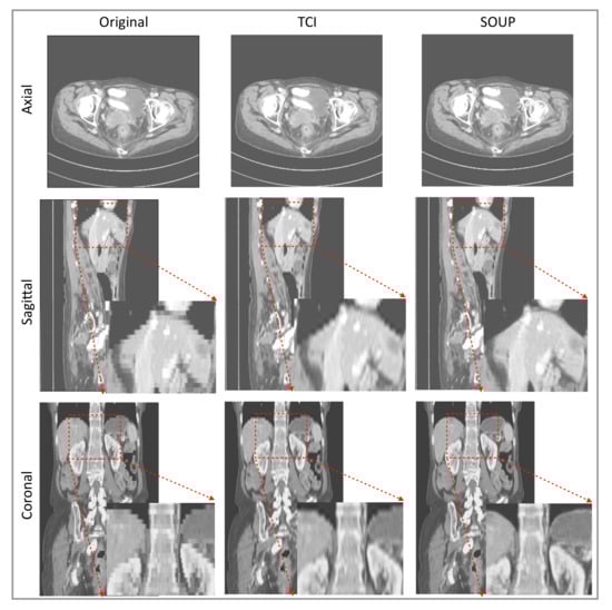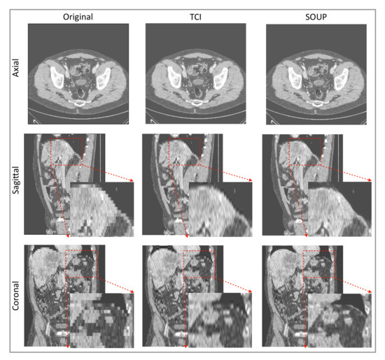 - Umehara, K.; Ota, J.; Ishida, T. Application of Super-Resolution Convolutional Neural Network for Enhancing Image Resolution in Chest CT. J. Digit. Imaging 2018, 31, 441–450. [Google Scholar] [CrossRef]
