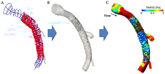- Migliori, S.; Chiastra, C.; Bologna, M.; Montin, E.; Dubini, G.; Aurigemma, C.; Fedele, R.; Burzotta, F.; Mainardi, L.; Migliavacca, F. A framework for computational fluid dynamic analyses of patient-specific stented coronary arteries from optical coherence tomography images. Med. Eng. Phys. 2017, 47, 105–116. [Google Scholar] [CrossRef] [PubMed]