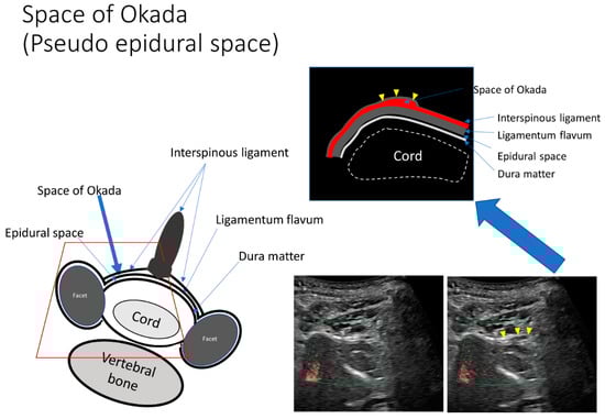 - Lirk, P.; Kolbitsch, C.; Putz, G.; Colvin, J.; Colvin, H.P.; Lorenz, I.; Keller, C.; Kirchmair, L.; Rieder, J.; Moriggl, B. Cervical and High Thoracic Ligamentum Flavum Frequently Fails to Fuse in the Midline. Anesthesiology 2003, 99, 1387–1390. [Google Scholar] [CrossRef]