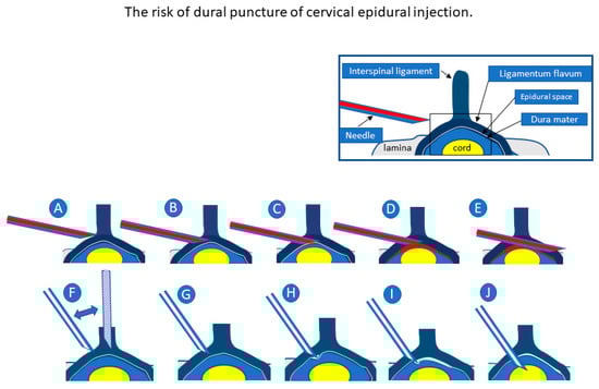 - Abbasi, A.; Malhotra, G.; Malanga, G.; Elovic, E.P.; Kahn, S. Complications of interlaminar cervical epidural steroid injections: A review of the literature. Spine 2007, 32, 2144–2151. [Google Scholar] [CrossRef] [PubMed]