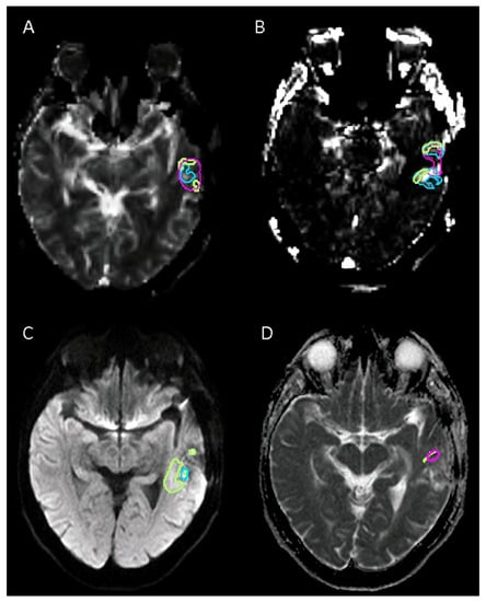 - Guo, L.; Wang, G.; Feng, Y.; Yu, T.; Guo, Y.; Bai, X.; Ye, Z. Diffusion and Perfusion Weighted Magnetic Resonance Imaging for Tumor Volume Definition in Radiotherapy of Brain Tumors. Radiat. Oncol. 2016, 11, 123. [Google Scholar] [CrossRef]