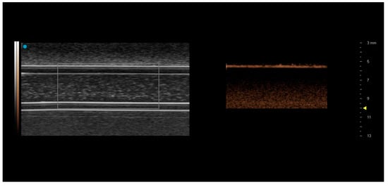 The Fujifilm Visualsonics Vevo 3100 MX250 probe was only able to visualise the contrast-filled superficial tubes in B-mode (Figure 4).