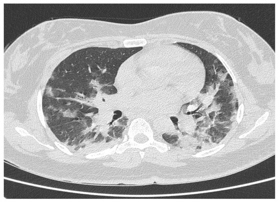 Chest high-resolution computed tomography (HRCT) is the gold-standard radiological technique for the detection of SARS-CoV-2-associated pneumonia, with a sensitivity of 97%, specificity of 25%, and accuracy of 68% in comparison with RT-PCR [4]. The advantages brought by chest HRCT in COVID-19 diagnosis are mainly ascribable to its ability to recognize several characteristic patterns, such as ground glass opacity (GGO), consolidation, crazy-paving, and, less frequently, reverse halo-sign [5,6]. In this regard, several studies have shown that reduced aerated lung volume and increased GGO and/or consolidation and fibrosis are indicators of poor outcome in COVID-19 patients. Thus, chest CT scan represents a helpful radiological modality in the evaluation and management of SARS-CoV-2-infected patients [7].