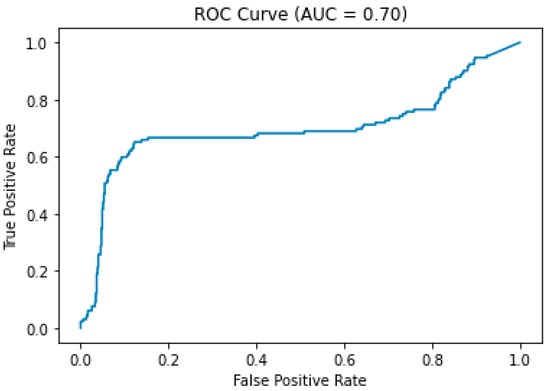ROC curve of the prediction model with an area under the curve (AUC) of 0.7.