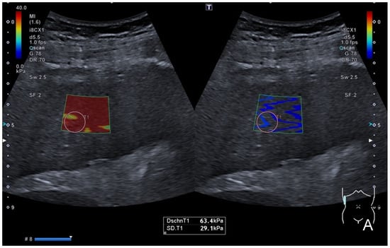 In recent years, different ultrasound (US) shear wave elastography (SWE) techniques have been developed, and new diagnostic approaches can now be used in the non-invasive diagnosis of liver diseases [1,2,3]. Through the application of repetitive high frequency acoustic radiation force impulses into the liver tissue, a qualitative, color-coded elastogram and quantitative measurements of the shear-wave speed (in m/s) or of the stiffness (in kPa) of the elasticity changes in the liver tissue can be obtained for diagnostic and monitoring purposes [1,2]. This enables both the qualitative and quantitative assessments of parenchymal liver diseases, such as hepatic steatosis, inflammatory liver diseases, liver fibrosis and cirrhosis [4,5,6,7].