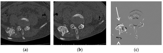 - Sakamoto, R.; Yakami, M.; Fujimoto, K.; Nakagomi, K.; Kubo, T.; Emoto, Y.; Akasaka, T.; Aoyama, G.; Yamamoto, H.; Miller, M.I.; et al. Temporal subtraction of serial CT images with large deformation diffeomorphic metric mapping in the identification of bone metastases. Radiology 2017, 285, 629–639. [Google Scholar] [CrossRef] [PubMed]