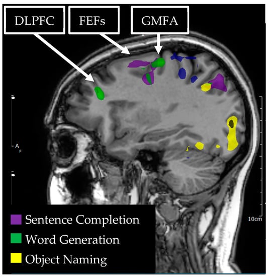- Klaus, J.; Schutter, D.J.L.G. The Role of Left Dorsolateral Prefrontal Cortex in Language Processing. Neuroscience 2018, 377, 197–205. [Google Scholar] [CrossRef]