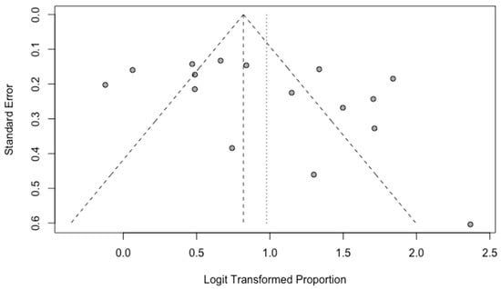 A funnel plot was used for the evaluation of possible publication bias. By visual inspection, there is no subjective asymmetry among the studies in overall detection rate evaluation (Figure 6).