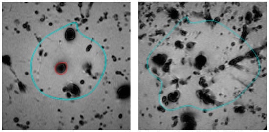 Manual volumetry of each liver was performed by using ROI measurements on the axial T1-weighted FL2D sequences showing the hyperintensity of the ablation zone by contouring the hyperintense area point by point using the “closed polygon” tool of Horos DICOM 4.0.0. Thus, the acquired two-dimensional area in square centimetres (cm2) was multiplied by the slice thickness to obtain the ablation volume in cubic centimetres (cm3). Finally, all calculated ablation volumes per slice were summed up to obtain the total ablation zone volume. Additionally, a second semi-automatic method of volumetry was extended through the Horos DICOM 4.0.0 viewer’s “Add Missing ROIs” AI feature, where the reader outlined a ROI on an exemplary slice and the missing ROIs can then be automatically generated. This feature allowed a semi-automatic calculation of the ablation volume and reduced time required for evaluation as opposed to fully manual volumetry.