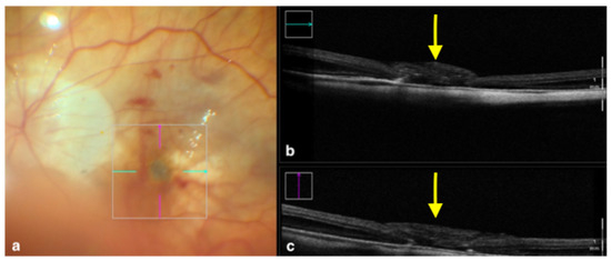 - Browne, A.W.; Ehlers, J.P.; Sharma, S.; Srivastava, S.K. Intraoperative Optical Coherence Tomography-Assisted Chorioretinal Biopsy in the DISCOVER Study. Retina 2017, 37, 2183–2187. [Google Scholar] [CrossRef]