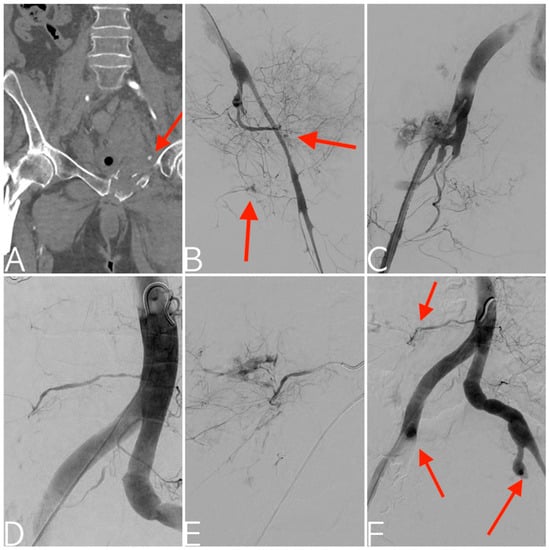 - Vaidya, R.; Waldron, J.; Scott, A.; Nasr, K. Angiography and Embolization in the Management of Bleeding Pelvic Fractures. JAAOS J. Am. Acad. Orthop. Surg. 2018, 26, e68–e76. [Google Scholar] [CrossRef] [PubMed]