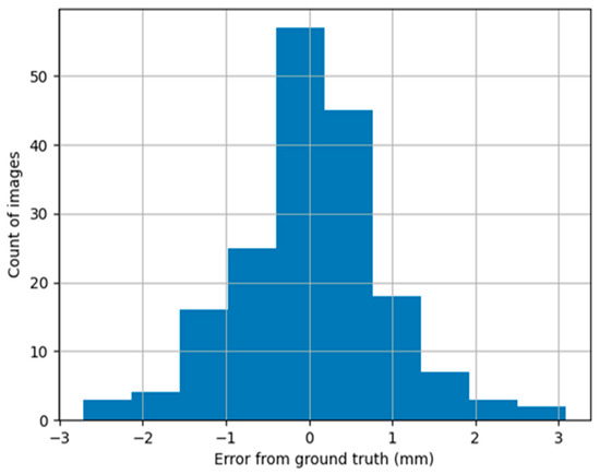 In the third stage, an algorithm was created to measure mandibular bone cortical thickness from a particular CBCT slice which is used to determine the presence or absence of osteoporotic changes. The empirical error distribution for this stage is depicted in Figure 10.
