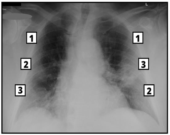 CXR were acquired in the Emergency Room, employing digital radiographic systems (Definium 8000, GE Healthcare, Chicago, IL, USA; FDR AcSelerate, Fujifilm Corporation, Tokyo, Japan), equipped with automatic exposure control and with 120–150 kV tube voltages ranges. Due to critical clinical conditions, the largest number of CXR was acquired in a single antero-posterior (AP) projection with patients in supine or sitting position (n = 86); a smaller amount of CXR (n = 31) were acquired in orthostasis in posteroanterior (PA) and lateral (LAT) projections.