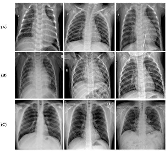 Sample of CXR images: (A) healthy, (B) non-COVID-19, and (C) COVID-19.