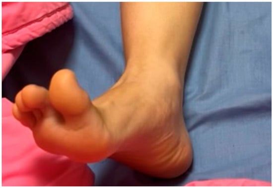 Spasticity occurred in the patient’s feet; this picture was taken when she was sleeping.