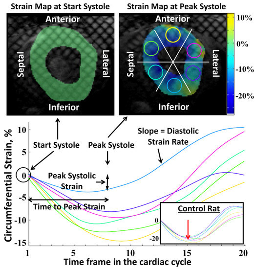 - Ibrahim, E.H.; Stojanovska, J.; Hassanein, A.; Duvernoy, C.; Croisille, P.; Pop-Busui, R.; Swanson, S.D. Regional cardiac function analysis from tagged MRI images. Comparison of techniques: Harmonic-Phase (HARP) versus Sinusoidal-Modeling (SinMod) analysis. Magn. Reson. Imaging 2018, 54, 271–282. [Google Scholar] [CrossRef]