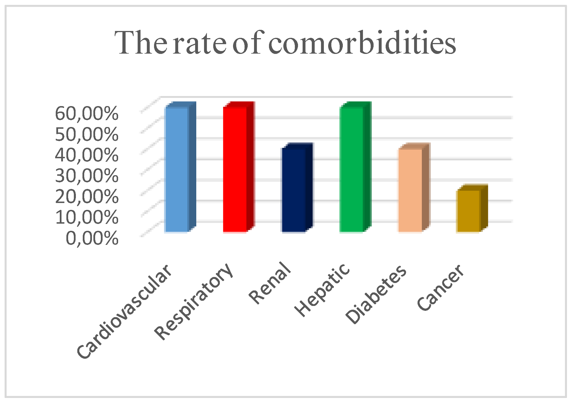The comorbid conditions existing in the study population were cardiovascular in 3 cases, respiratory in 3 cases, 2 patients with renal comorbidity, 3 with hepatic comorbidity, 2 patients with diabetes and 1 with cancer, all 5 patients with PE presenting comorbidities (