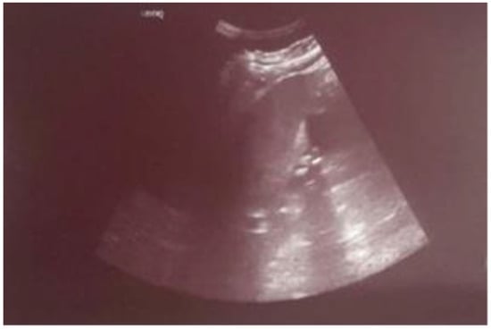 On physical exam the patient was in good general condition, conscious, cooperative, afebrile, hemo-dynamically and cardio-respiratory stable. Clinical exam revealed abdomen above the xipho-pubic plane due to excess adipose tissue, slightly tender to palpation in the right hypochondrium, positive Murphy sign. The Sars-Cov-2 test was negative. Laboratory tests showed a biological inflammatory syndrome, while abdominal ultrasonography steatosis and multiseptated gallbladder, with hyperechogenic images with posterior acoustic shadowing, up to 1 cm in size, slightly thickened walls (suggestive of acute lithiasic cholecystitis) (Figure 1). No fluid collections were detected in the peritoneal spaces to assess shunt patency.