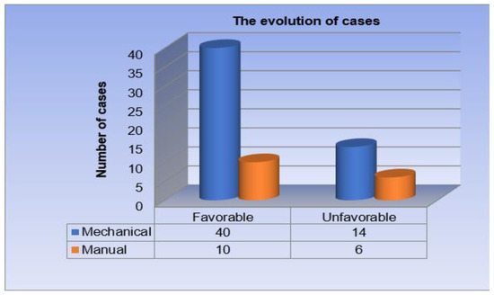 Distribution of the type of anastomosis according to the evolution of the patient’s condition.