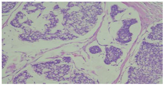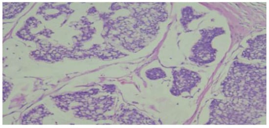 Age is the most important known risk factor for the development of breast cancer. Mucinous breast carcinoma usually occurs in elderly patients. The incidence of breast cancer significantly increases with age and is highest in women during perimenopause and postmenopausal [,], with our 73-year-old patient having been in postmenopausal for approximately 24 years.