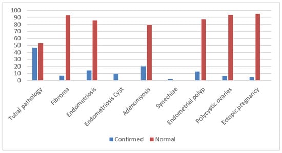 - Antonisamy, N.; Reddy, N.S.; Chinta, P.; et al. Role of Hysterosalpingography in Diagnosing Tubal Blockage—A Prospective Diagnostic Study. J Hum Reprod Sci. 2021, 14, 386–391. [Google Scholar] [CrossRef] [PubMed]