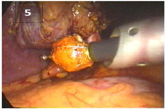 - Giacometti, M.; Battafarano, F.; Geraci, O.; Zonta, S. Laparoscopic trans-cystic common bile duct exploration and treatment of choledocholithiasis in a patient with Roux-en-Y reconstruction after gastrectomy: Report of an emergency case. J Surg Case Rep. 2021, 2021, rjab144. [Google Scholar] [CrossRef]